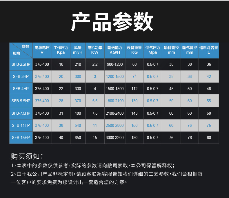 四:真空上料機規格選型表(部分)